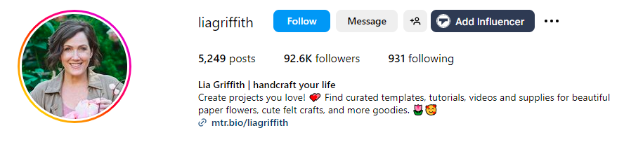 Lia Griffith’s Instagram profile is a visually stunning and inspiring space dedicated to the art of handmade crafts. The feed is a curated gallery of beautiful DIY projects, primarily focusing on elegant paper flowers, delicate felt creations, and a variety of other creative endeavors. Through high-quality photography and short video clips, the profile offers a glimpse into the making process, enticing viewers to try their hand at crafting.